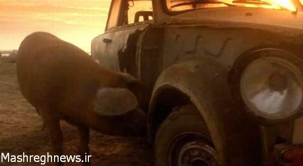 خوکی که آهن می‌خورد (عکس)