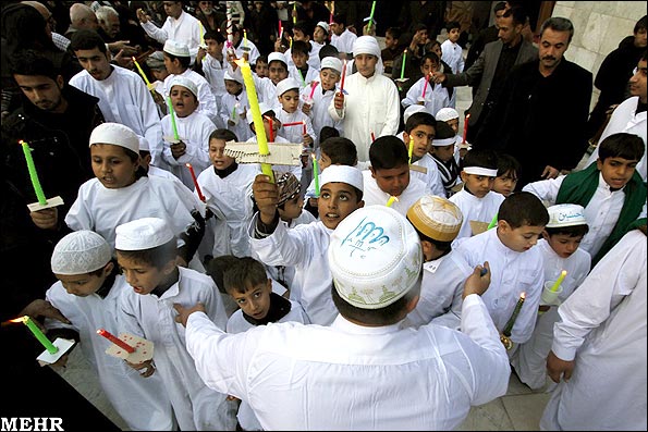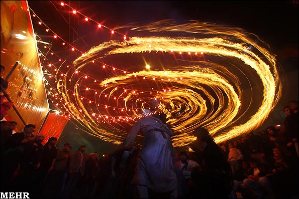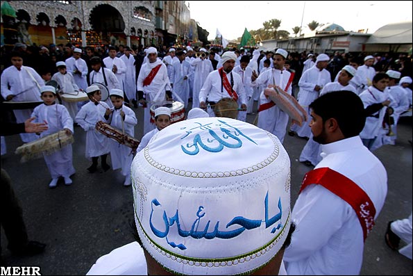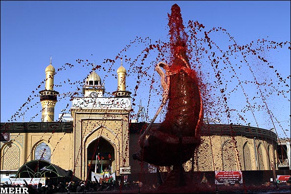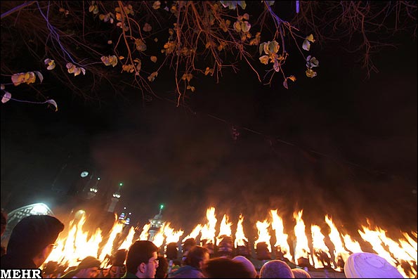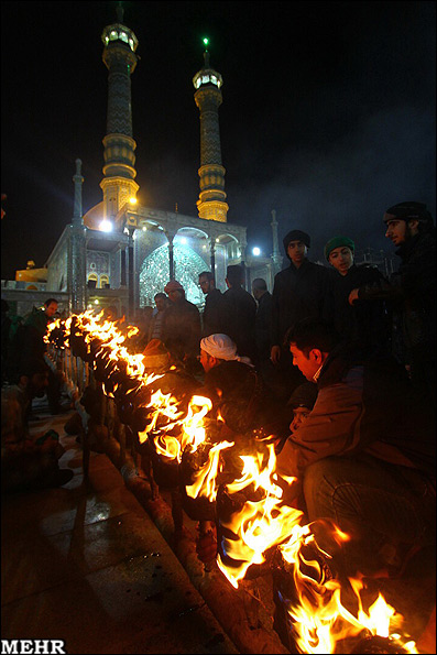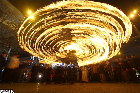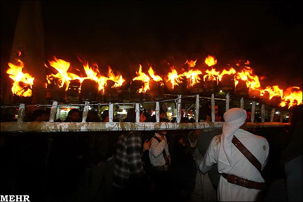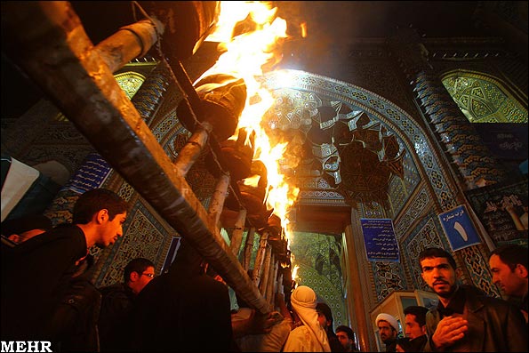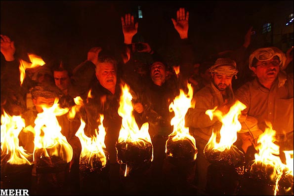 مراسم نمادین مشعل گردانی در قمعزاداری شب تاسوعای حسینی در کربلای معلی
