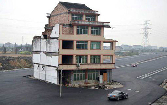 یک مرد چینی و همسرش با رد درخواست دولت چین برای واگذاری ملکشان به منظور ایجاد بزرگراه در استان «ژجینگ»، منظرهای عجیب ایجاد کردند.