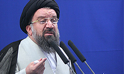 احمد خاتمی در اولین نماز جمعه بهمن ماه 1388 درباره موسوی و کروبی چنین گفت: " در این میان کسانی هستند که میگویند ما با نظام، اما معترض و منتقد هستیم. به هر ترتیب قانون اساسی ما اعتراض را پذیرفته و اصلا اعتراض حق هر شهروندی است و ما هیچگاه معترضین را برانداز نخواندهایم و اگر این افراد در چارچوب قانون اساسی حرکت کنند آنها را برانداز نمینامیم … ما به برادرانی که خود را معترض مینامند میگوییم تا کی و چگونه میخواهید به اعتراضاتتان ادامه دهید. شما میخواهید همچنان بیانیههای ساختارشکن که بوی عبور از قانون اساسی دارد ادامه دهید و همچنان بسترساز کسانی شوید که سعی دارند هر موقعیت وحدتآفرین را به تفرقه تبدیل کنند؟"