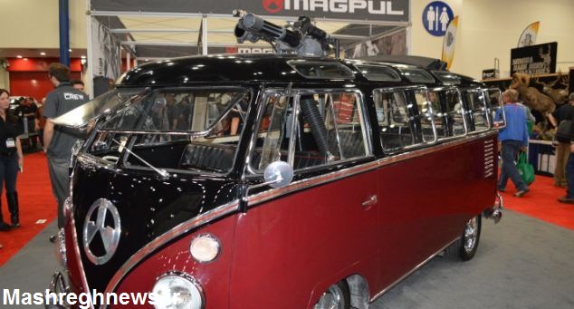 در یک نمایشگاه اسلحه در تگزاس آمریکا یک دستگاه ون فولکس واگن مدل 1962 مسلح به مسلسل گاتلینگ به نمایش درآمده است.