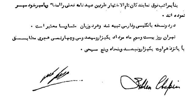 این قرار داد مال دوران شاهناشاهی هست والان انقلاب شده و دوران جمهوری اسلامی سر کار اومده این معاهده کلا نقض میشه چون اون معاهده بین دو دولت دیگه نوشته شده است مثل قولنامه خونه میشه به نام شخصی باشه بعدا اون بره من برم جاش بگم حسن قولنامه نوشته شما تو قانون خودتون قبول ندارین میگین باید قولنامه به نام شخص باشه و کلی بندهاشم عوض می کنین