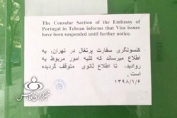 به گزارش فارس، ششم فروردین ماه سال جاری (1398) کنسولگری سفارت پرتغال در تهران در اطلاعیهای از توقف همه امور مربوط به روادید تا اطلاع ثانوی خبر داد و پس از آن هم وی اف اس گلوبال VFS ارائه دهندۀ خدمات برای درخواست ویزای پرتغال در ایران در سایت خود این خبر را اینگونه اعلام کرد: «طبق آخرین اخبار دریافتی از سوی سفارت پرتغال در تهران، درخواست ویزا فعلا متوقف شده و به محض دریافت اطلاعات جدید از سوی سفارت مبنی بر فعال شدن مجدد پروسه درخواست ویزا، از طریق ارسال ایمیل شما را مطلع خواهیم کرد. همچنین خواهشمندیم تا اطلاع ثانوی به مرکز درخواست ویزا مراجعه نکنید.»