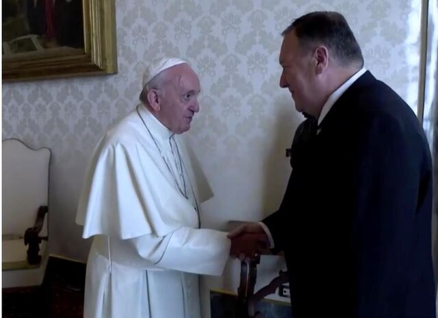 به گزارش ایسنا، وزارت امور خارجه آمریکا اظهار کرد، مایک پامپئو، وزیر امور خارجه آمریکا و پاپ فرانسیس در این دیدار نیم ساعته درباره اهمیت حفاظت از حقوق اقلیتها در خاورمیانه توافق کردند.