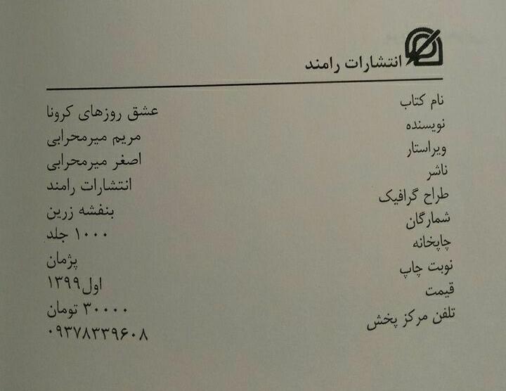 کتاب داستان «عشق روزهای کرونا» در انتشارات رامند منتشر شد.